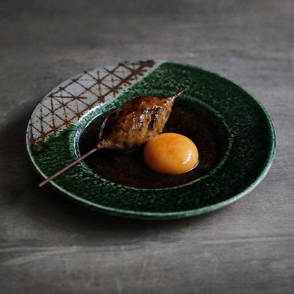 Introducing the SABI ORIBE KOSHI PLATE – a unique piece of Japanese art that will bring beauty and style to your table. This exquisite plate boasts a distinctive, elegant design that makes it stand out from the crowd. Let this special plate be the perfect addition to your dining experience.